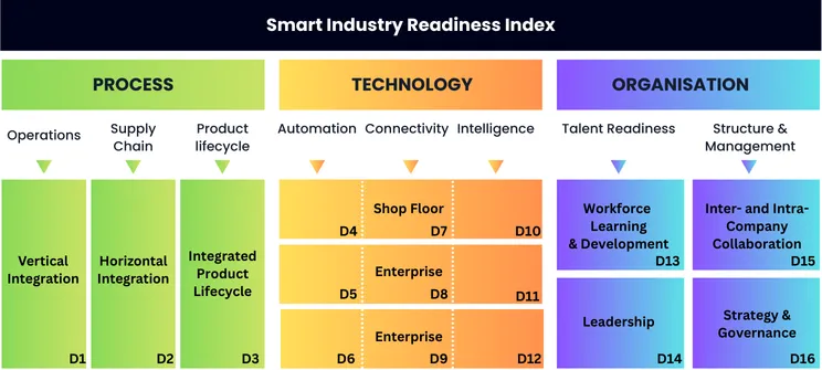 - Technology: Shop Floor/Enterprise/Facility Automation (D4–D6); Connectivity (D7–D9); Intelligence (D10–D12)